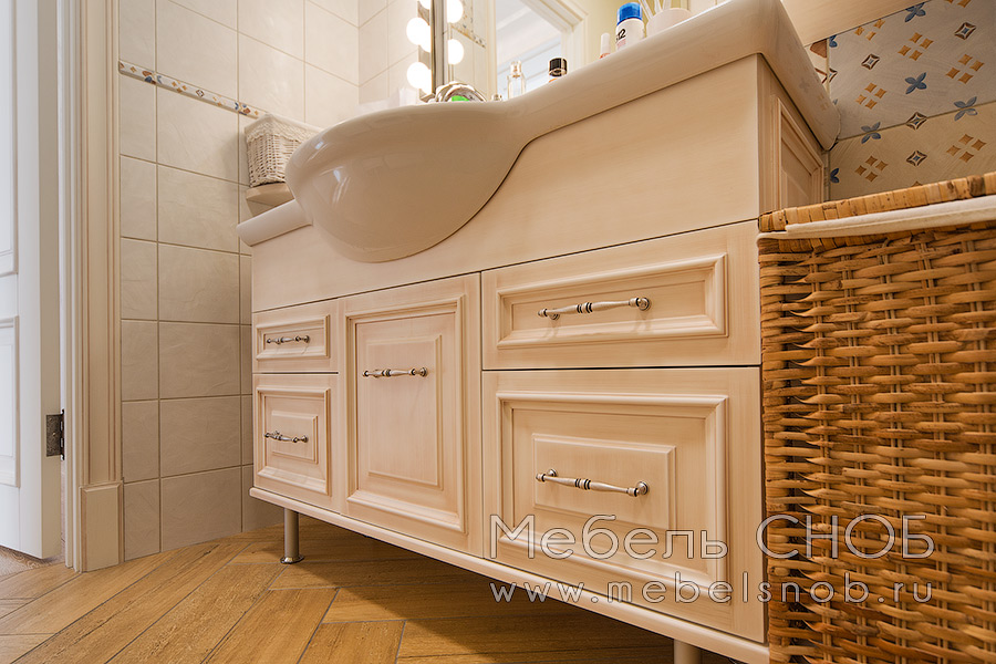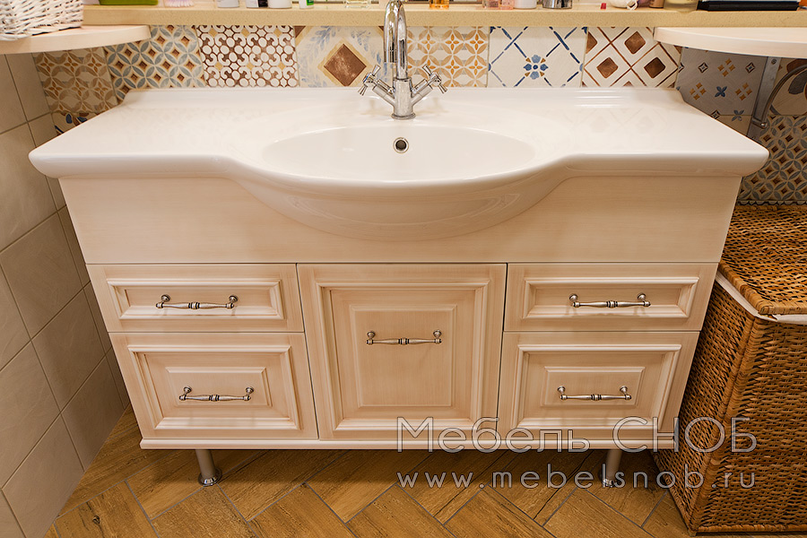Материал: Фасады - МДФ с покраской и патиной, мойка - фаянс