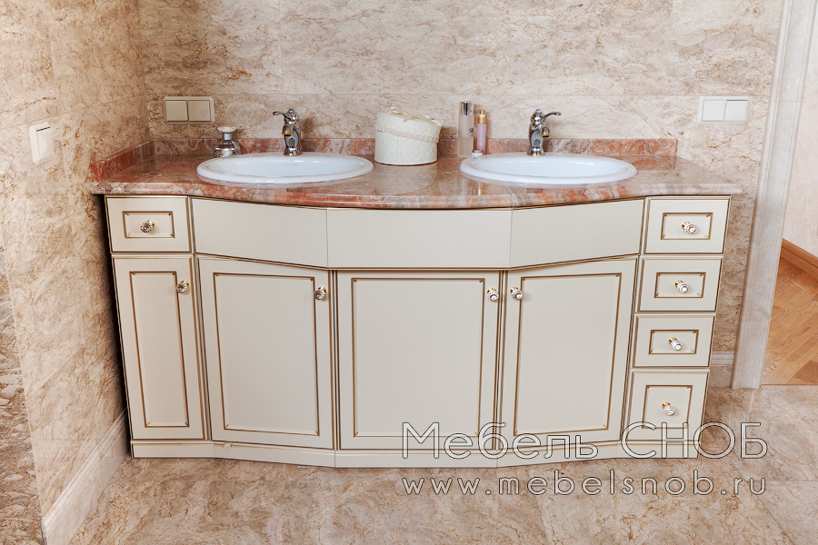 Материал: Фасады - МДФ с покраской и патиной, мойка - фаянс