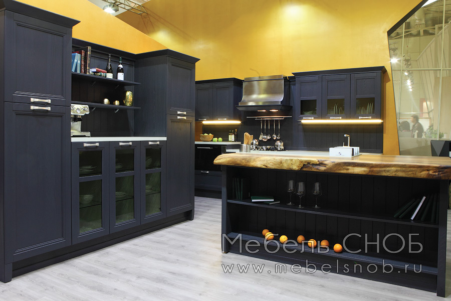 Материал: Рамка фасадов - массив Red Alder. Центральная часть - шпон черешни. Отделка - тонирование с искусственным старением. (Италия), корпуса - ЛДСП Egger (Германия), фурнитура Blum (Германия), аксессуары INOXA (Италия).