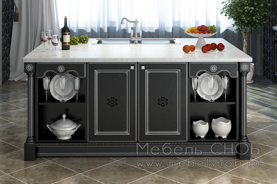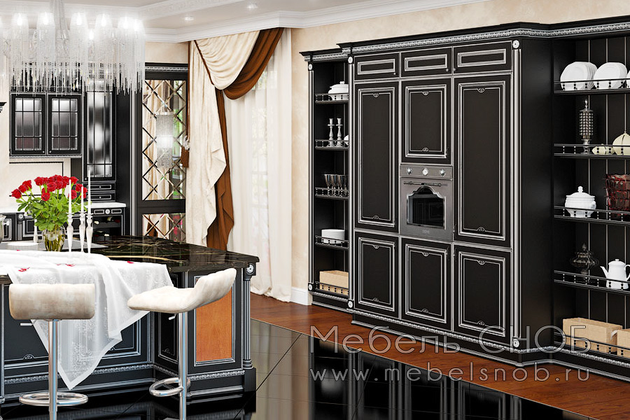 Материал: Рамка фасадов - массив ясеня. Центральная часть - МДФ, облицованный шпоном ясеня. Отделка - черная с серебряной патиной. (Италия), корпуса - ЛДСП Egger (Германия), фурнитура Blum (Германия), аксессуары INOXA (Италия).